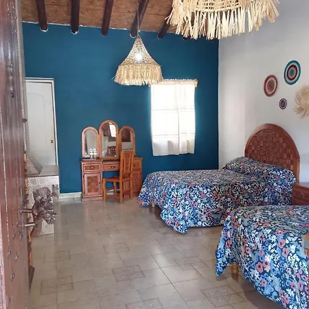 The kitchen amenities at Hotel Cabanas Chalamu feature a fridge and kitchenware, provided in a dining area. Restaurante Camino Real is a restaurant serving Mexican dishes a short way from the property.